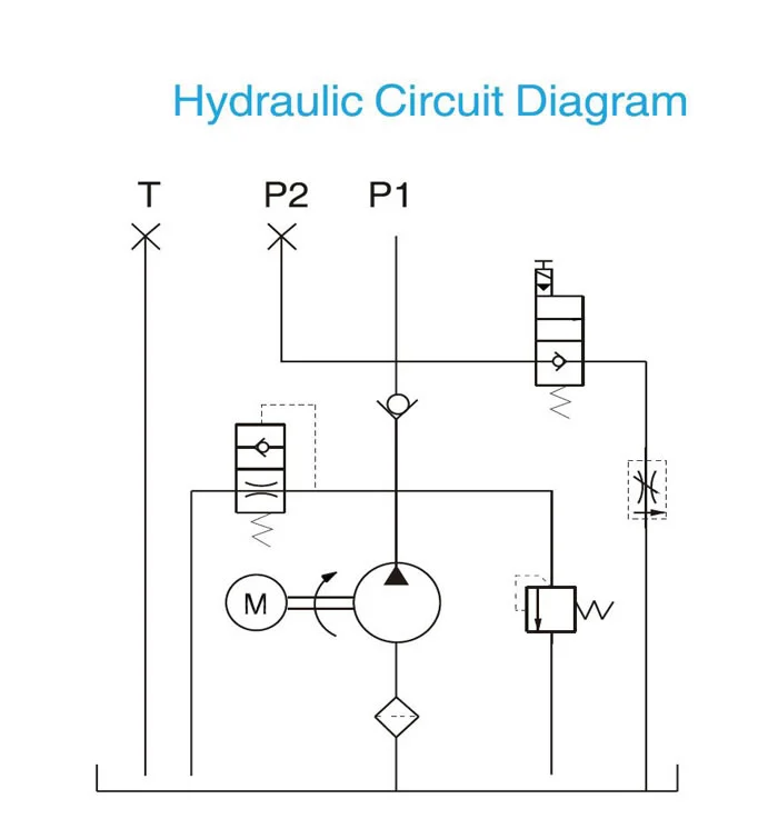 This power unit is designed solely for hydraulic car lift by the motor power up, gravity down with vehicle weight, requiring a low noise level. The lowering movement is activated by the cartridge solenoid valve, and the lowing speed is regulated by an adjustable pressure compensated flow control valve.