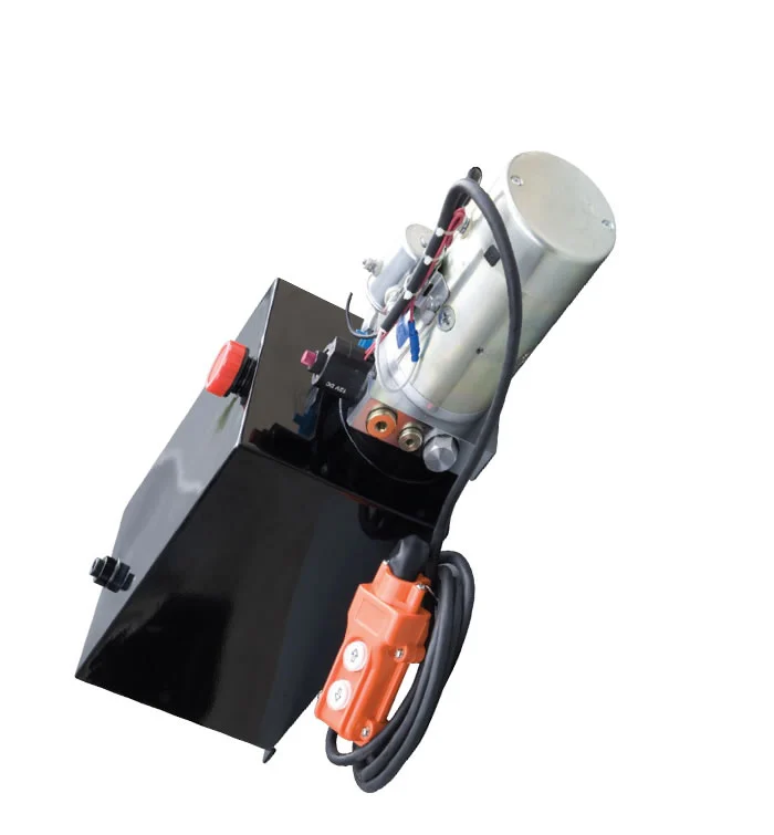 This power unit is designed solely for dump trailer, by motor power up, gravity down with vehicle weight. To push the start button on the motor can lift the trailer. The lowering movement is activated by the solenoid cartridge valve, while the lowering speed is controlled by cartridge flow valve in the return circuit.