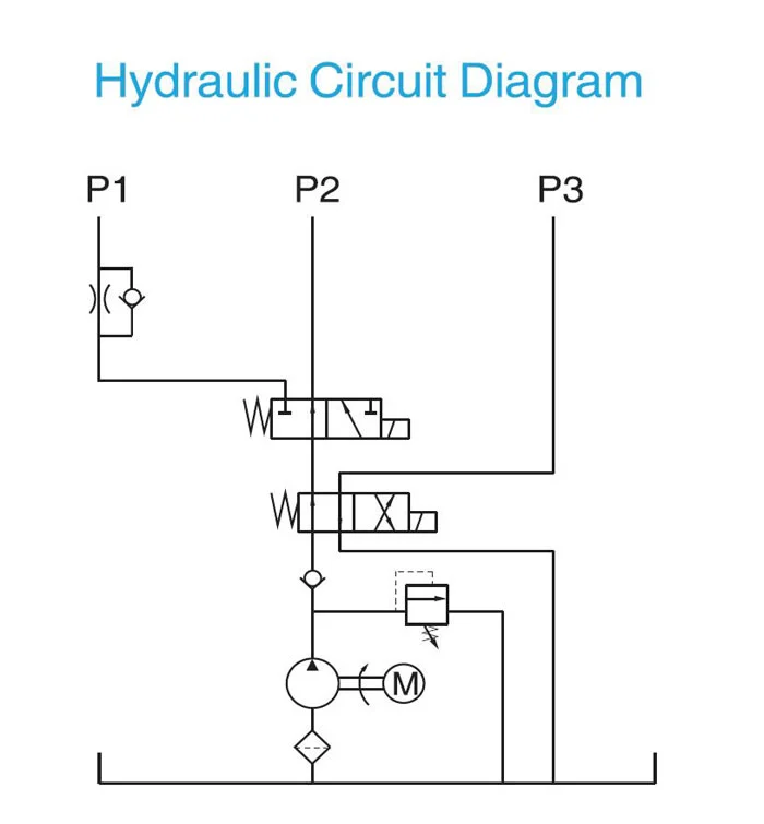 This power unit features typically power up, gravity down with machine weight function. The lowering movement is controlled by the solenoid valve while the lower speed is controlled by nonadjustable throttle valve. The high precision flow divider/combiner valve enables the synchronization of the 2 cylinders of the lift.